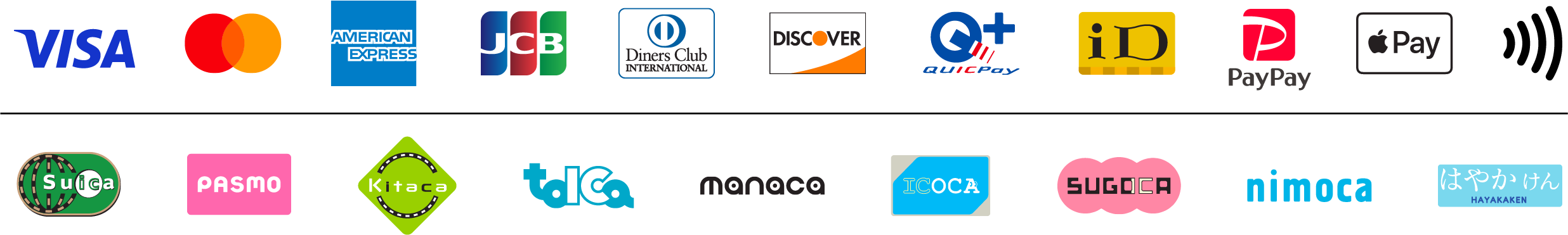 現金、各種クレジットカード(Visa、Mastercard、JCB、American Express、Diners Club)、QUICPay、iD、各種QRコード決済、交通系ICカードに対応しています。